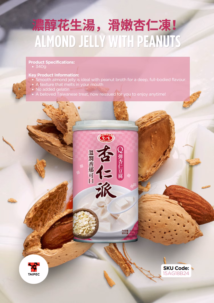 A proper nostalgic treat. This Taiwanese classic brings together the gentle fragrance of almond with a rich, savoury peanut broth. It is smooth, full-bodied, and seriously comforting. The almond jelly itself has that perfect chewy bite, making every spoonful so pleasant. Made with egg and dairy (no gelatin), it’s a lovely option for those after a soft, satisfying dessert or snack. A cupboard staple for anyone who loves traditional East Asian sweets.