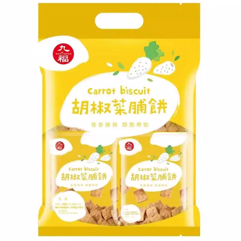 Enjoy the wholesome goodness of our Carrot Biscuits, crispy and aromatic, making them suitable for vegetarians. Each box contains eight convenient packets, perfect for afternoon tea or as a snack for outings.