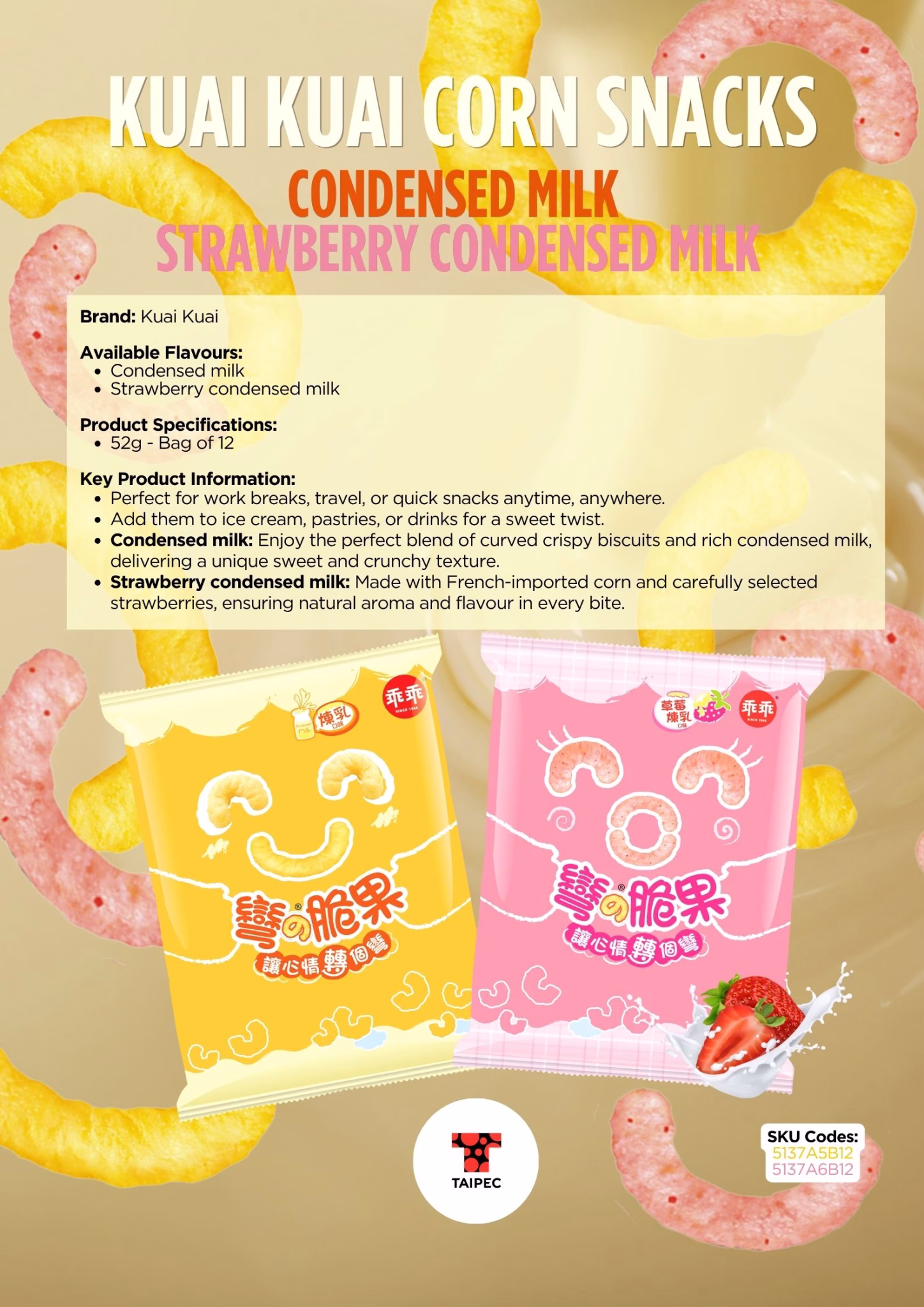 | Product Name | Kuai Kuai Corn Snack Condensed Milk Flavour |