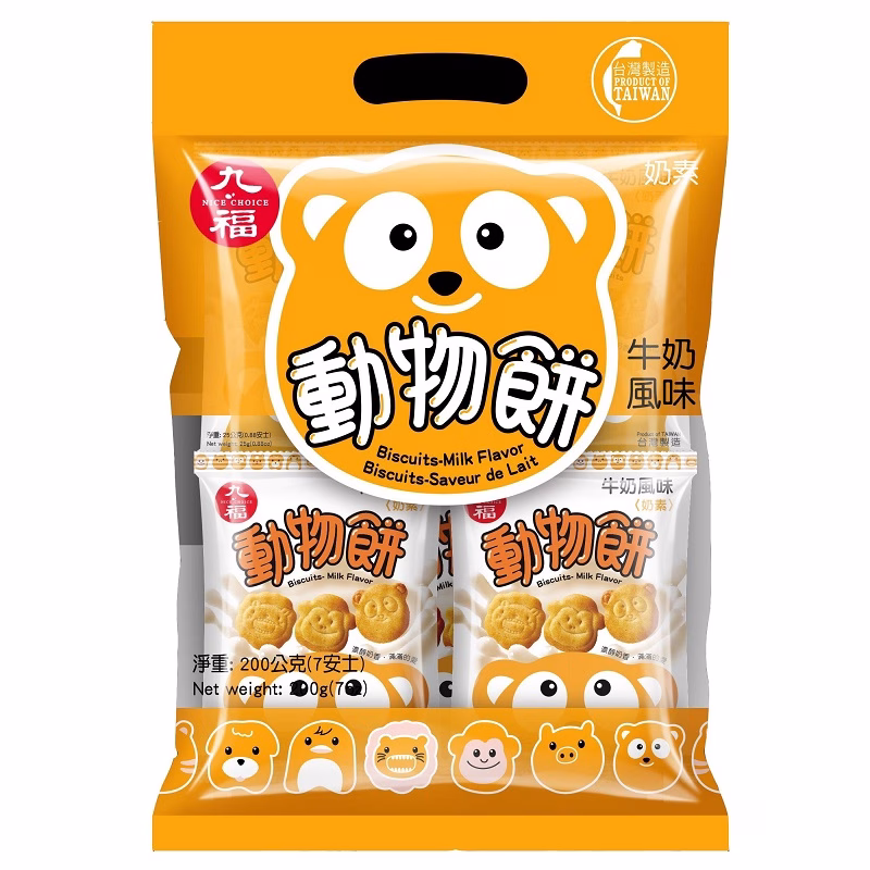 Shaped into charming animal designs, these milk-flavoured biscuits are a delightful snack for all ages. Made from wheat and conveniently packaged, they’re easy to take along as a tasty treat wherever you go.