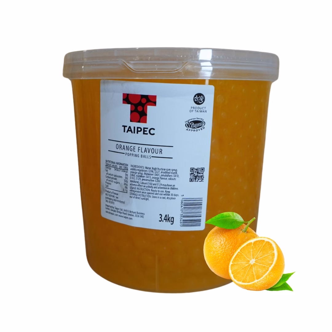 - Orange-flavoured popping boba