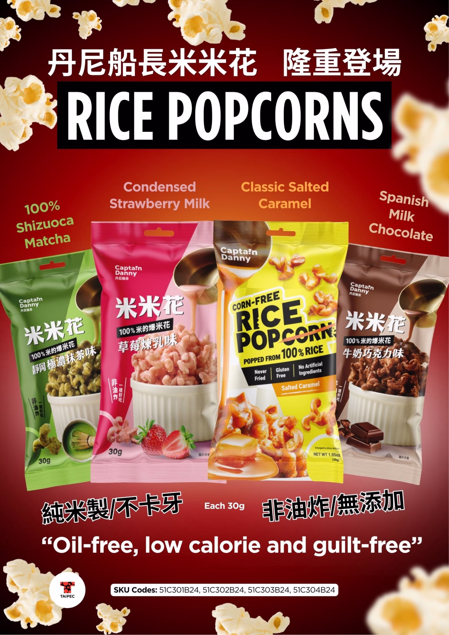 Captain Danny – Rice Popcorn Salted Caramel Flavour 30g – Box of 24 – 15% Discount (BBD:2026-06-12)